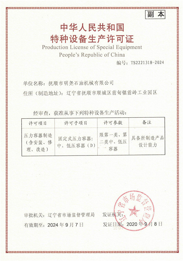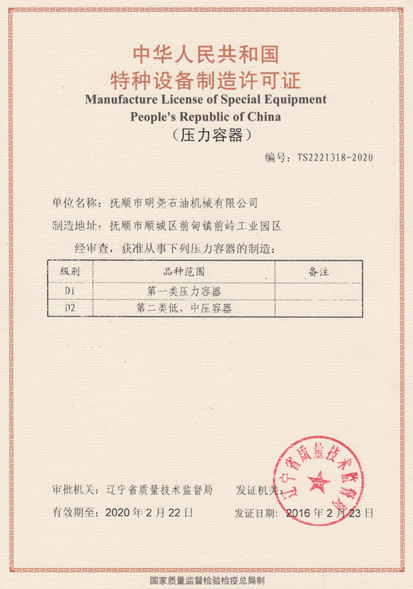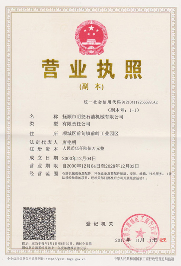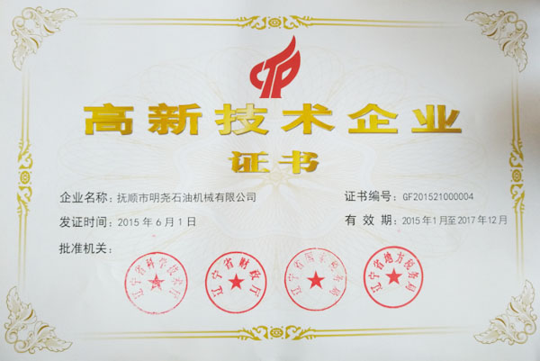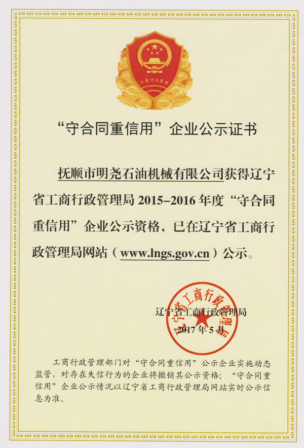 榮譽(yù)資質(zhì)-撫順市明堯石油機械有限公司